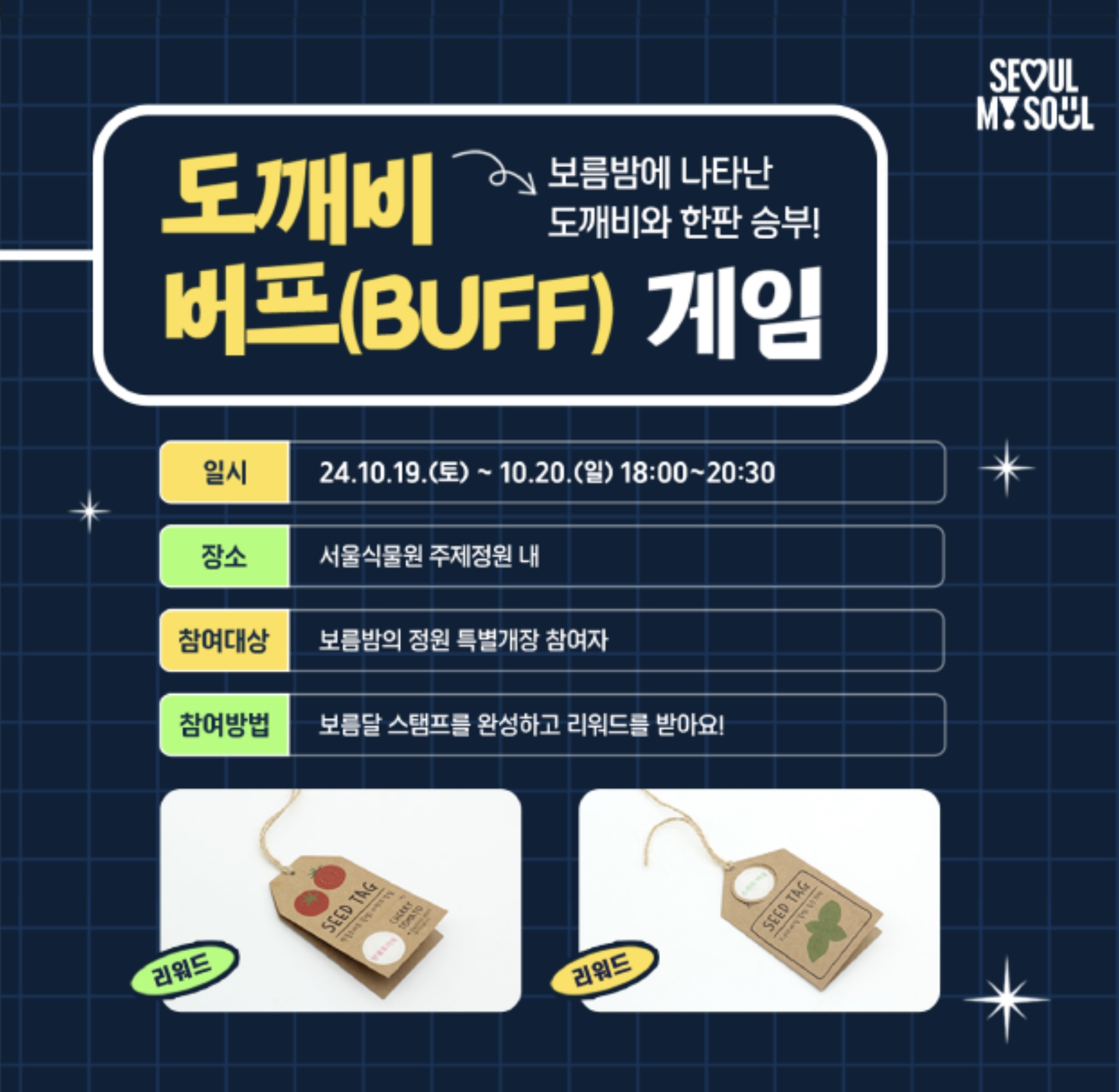 이번 행사의 또 다른 하이라이트는 ‘도깨비 버프 게임’입니다. 정원 곳곳에서 미션을 수행하며 도깨비 캐릭터들과 상호작용하는 게임인데요, 참가자들이 팀을 이뤄 즐길 수 있는 이색적인 놀이입니다. 야외에서 펼쳐지는 이 게임은 가족 단위로도 정말 즐겁게 참여할 수 있을 거예요.